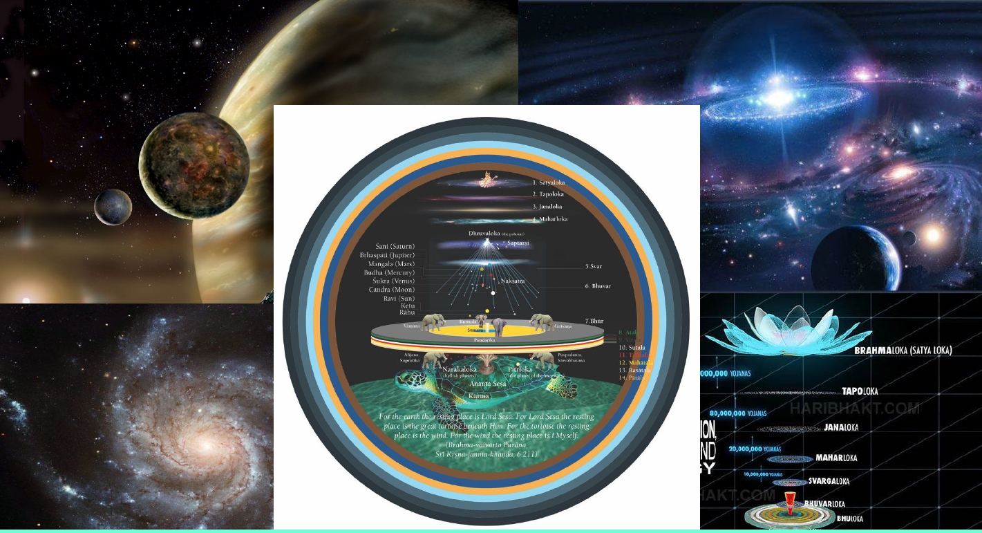 Beyond the material realms lies the spiritual world, a place of eternal bliss, where liberated souls reside in loving devotion to the Creator. The Bhāgavatam emphasizes that true understanding of the universe arises not merely through observation, but through devotion, leading one beyond illusion (māyā) to realize the eternal reality.